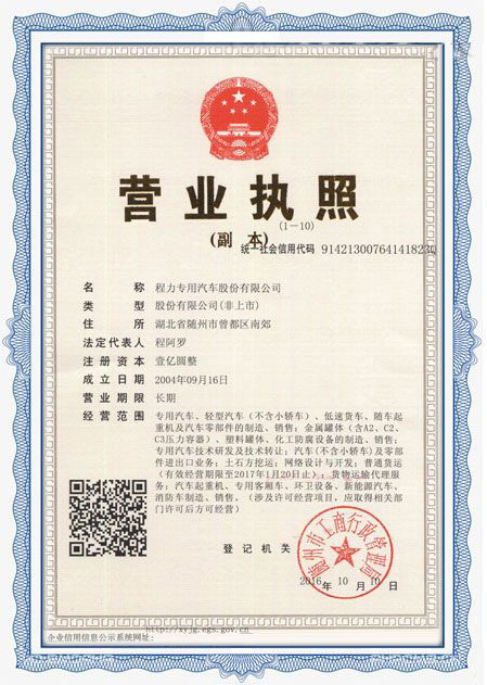 程力專用汽車股份有限公司各類專用汽車的專業(yè)廠家,大型專用汽車廠。國內(nèi)園林綠化、石油化工、市政環(huán)衛(wèi)、壓力容器專用汽車商。注冊“程力威”牌,產(chǎn)品代碼:“CLW”。東風(fēng)、解放、福田、重汽、陜汽、北奔等公司的重要合作伙伴,主要從事各類專用汽車的業(yè)務(wù),同時(shí)也銷售各大型廠家的整車及配件。公司擁有自行出口權(quán),其主導(dǎo)品種有灑水車系列、吸污(吸糞)車系列、垃圾車系列、掃地車系列、油罐加(運(yùn))油車系列、高空作業(yè)車系列、清障車系列、隨車吊系列、自卸車系列、教練車系列、半掛車系列、化工車系列、消防車系列、廂式(冷藏車)系列、牽引車系列、粉粒物料車系列、攪拌車系列、壓力容器系列、專用車配件等十八大系列300多個(gè)品種車型。同時(shí)批發(fā)東風(fēng)、解放、楚風(fēng)各種二類底盤。
